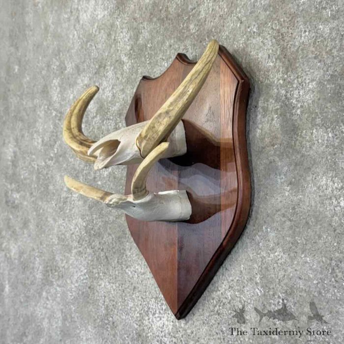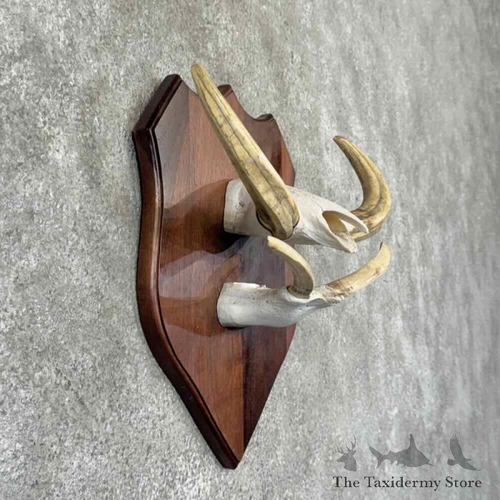 For sale, we have a first-rate African Warthog tusk taxidermy plaque mount. The tusks themselves measure 10 2/8″ and 10 4/8″ on the top, and the bottoms measure 4 7/8″ and 4 5/8″. This piece would be perfect for your cabin or safari room. All applicable measurements and dimensions are provided to help ensure this item will fit within your intended display space.