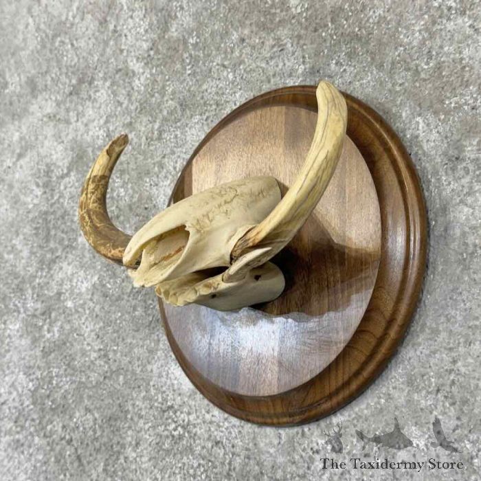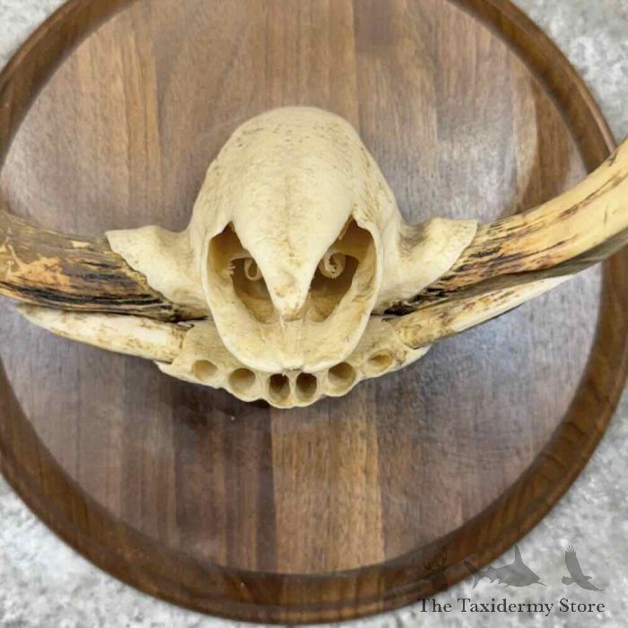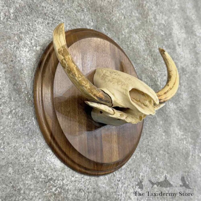 For sale, we have a gorgeous African Warthog tusk taxidermy plaque mount. The tusks themselves measure 7 2/8″ and 7 6/8″ on the top, and 2 1/8″ each on the bottom. This piece would be perfect for your cabin or safari room. All applicable measurements and dimensions are provided to help ensure this item will fit within your intended display space.