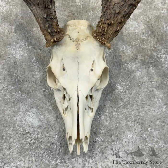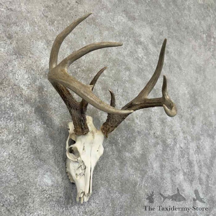 For sale, we have a splendid Whitetail Deer skull and antler “European” mount. This piece features a professionally cleaned and whitened skull, as well as a great set of high and tight antlers that earn an SCI gross score of 124 0/8″. This is the perfect piece for your office or cabin! All applicable measurements and dimensions are provided in the specifications section to help ensure this item will fit within your intended space, as well as meet expectations regarding the item’s featured attribute sizes, scores, etc.