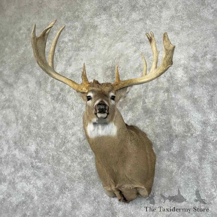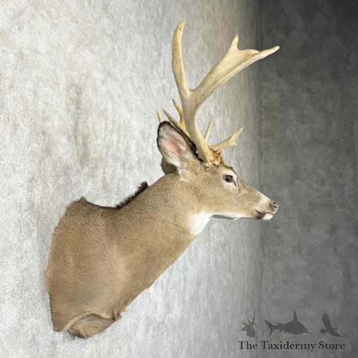 For sale, we have a phenomenal Whitetail Deer taxidermy shoulder mount, posed in a semi-upright position looking toward the viewer’s right side. This buck features gorgeous hair, a wonderful hide, and a large set of non-typical palmated antlers that earn an SCI Bronze Medal with a score of 177 1/8″. Combined with masterful taxidermy craftsmanship, this is the perfect mount for a cabin or office! All applicable measurements and dimensions are provided in the specifications section to help ensure this item will fit within your intended space, as well as meet expectations regarding the item’s featured attribute sizes, scores, etc.