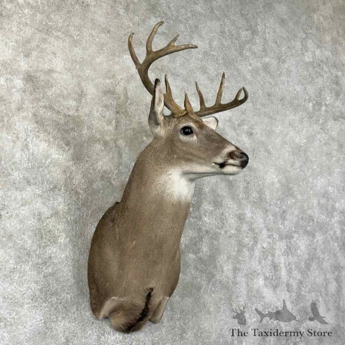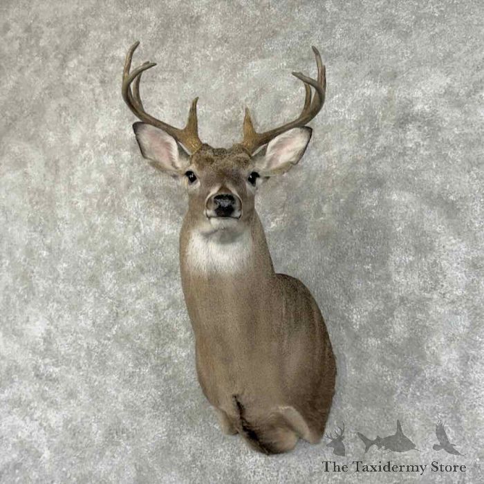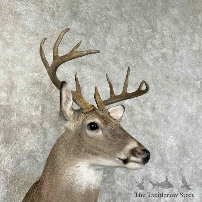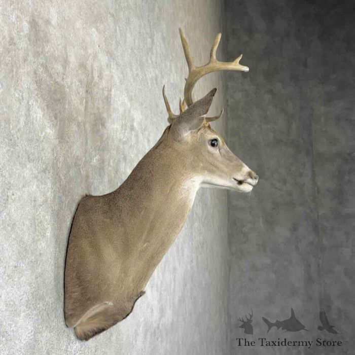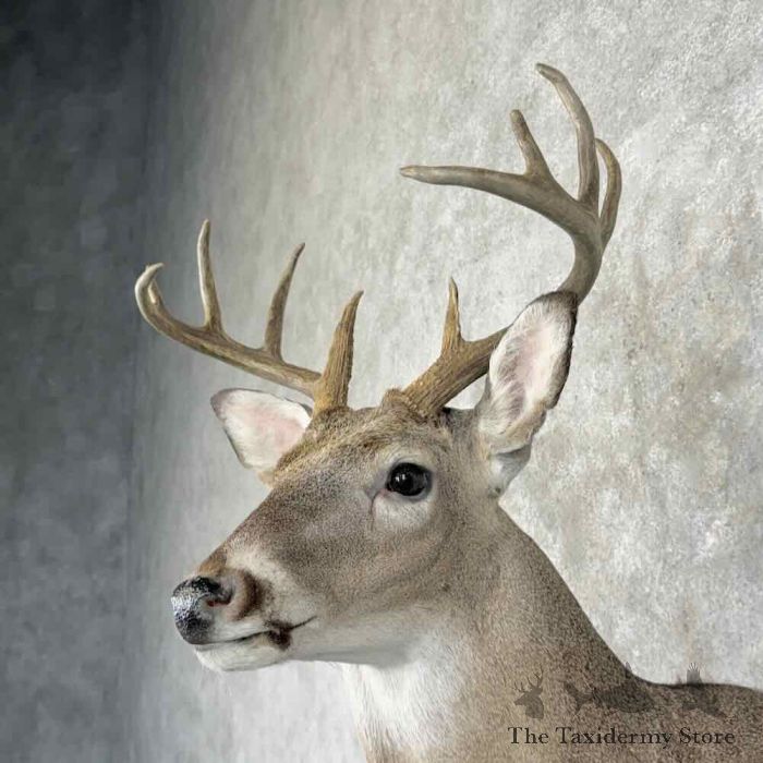 For sale, we have a gorgeous Whitetail Deer taxidermy shoulder mount, posed in an upright position, looking toward the viewer’s right side out into the room. This buck features a beautiful hide, stunning hair, expert taxidermy craftsmanship, and a great set of antlers that achieve a rough score of 110″. This piece is great for a cabin, office, restaurant, or home to get that ‘rustic’ feel. All applicable measurements and dimensions are provided in the specifications section to help ensure this item will fit within your intended space, as well as meet expectations regarding the item’s featured attribute sizes, scores, etc.
